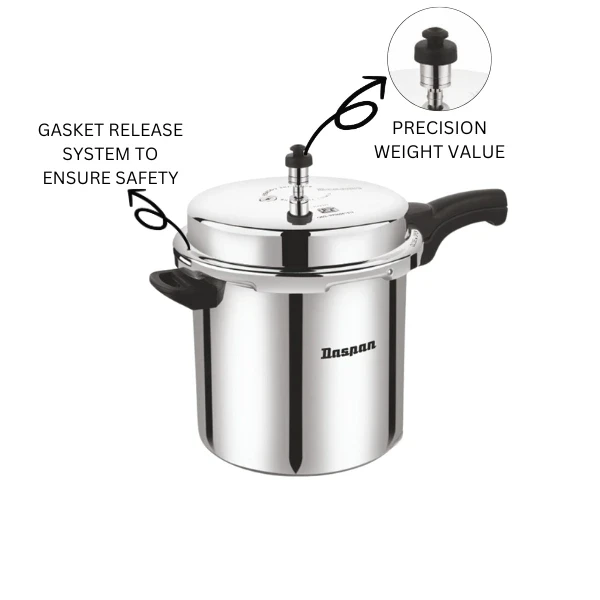 Safety is paramount with the Daspan 12 Ltr Pressure Cooker. The outer lid design enhances safety by providing a secure fit, while the strong locking mechanism ensures the lid stays firmly in place during cooking. The integrated pressure release valve efficiently manages excess steam, minimizing the risk of overpressure and ensuring safe cooking every time.