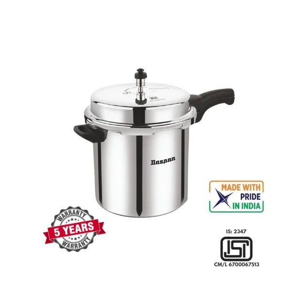 Constructed from high-quality aluminum, the Daspan Pressure Cooker ensures rapid and even heat distribution, helping to cook food faster while preserving its nutrients and flavor. The durable aluminum material resists corrosion, making this cooker a reliable and long-lasting kitchen tool.