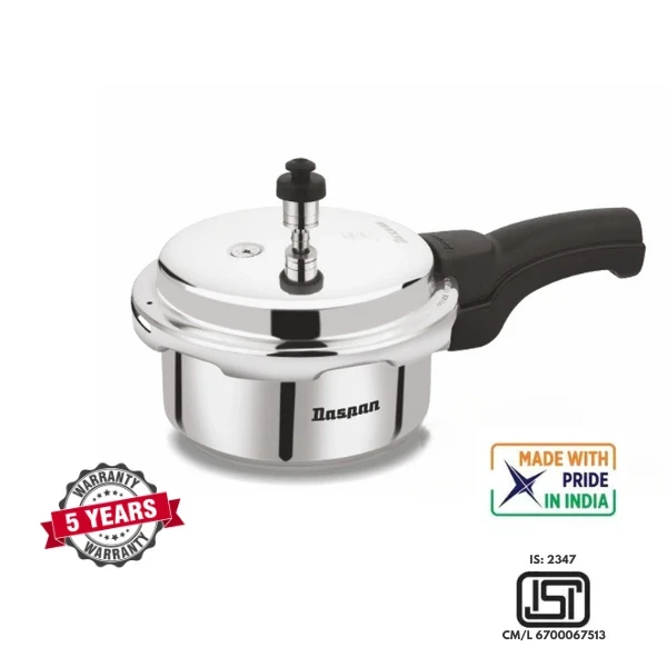 Safety is a top priority with the Daspan 2 Ltr Pressure Cooker. The outer lid design adds an extra layer of security, and the cooker features a strong locking mechanism that ensures the lid stays securely in place during cooking. The pressure release valve efficiently manages excess steam, reducing the risk of overcooking or accidents.