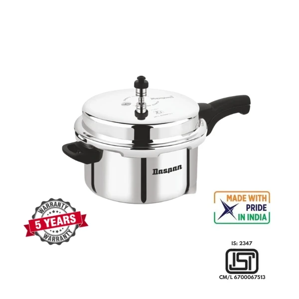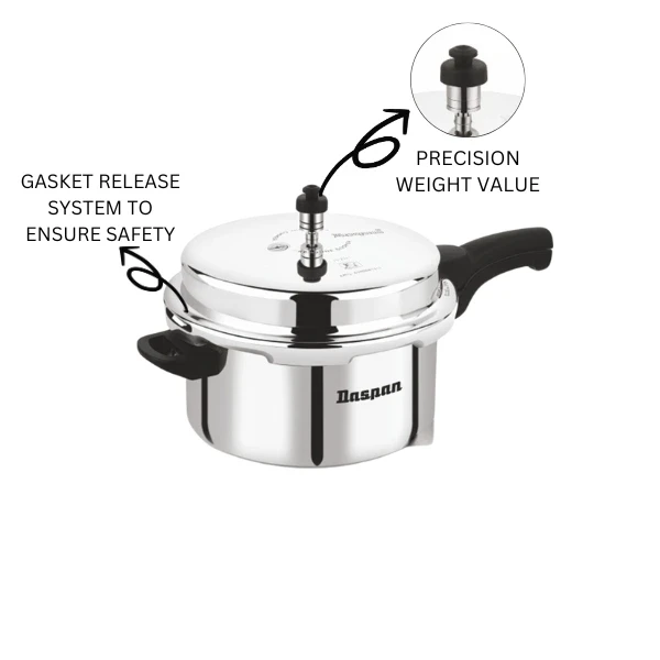 Made from premium-grade aluminum, the Daspan Pressure Cooker ensures even heat distribution, significantly reducing cooking time while preserving the flavors and nutrients in your food. The robust construction also ensures long-lasting performance, making this cooker a valuable addition to your kitchen.