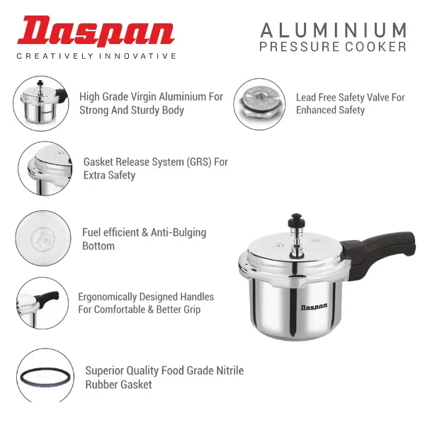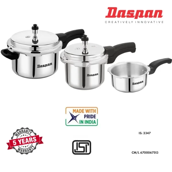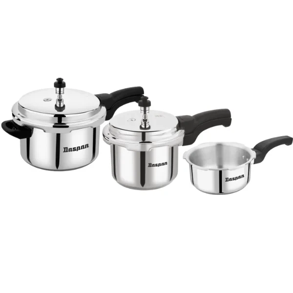 The Daspan OuterLid Pressure Cooker Combi Pack 5L + 3L + 2L brings together versatility, safety, and precision in one complete package. Made from premium-grade aluminum, these cookers are designed to distribute heat evenly, reducing cooking time and energy consumption. Whether it's slow-cooked stews, pressure-cooked rice, or sautéed veggies, these cookers have you covered.